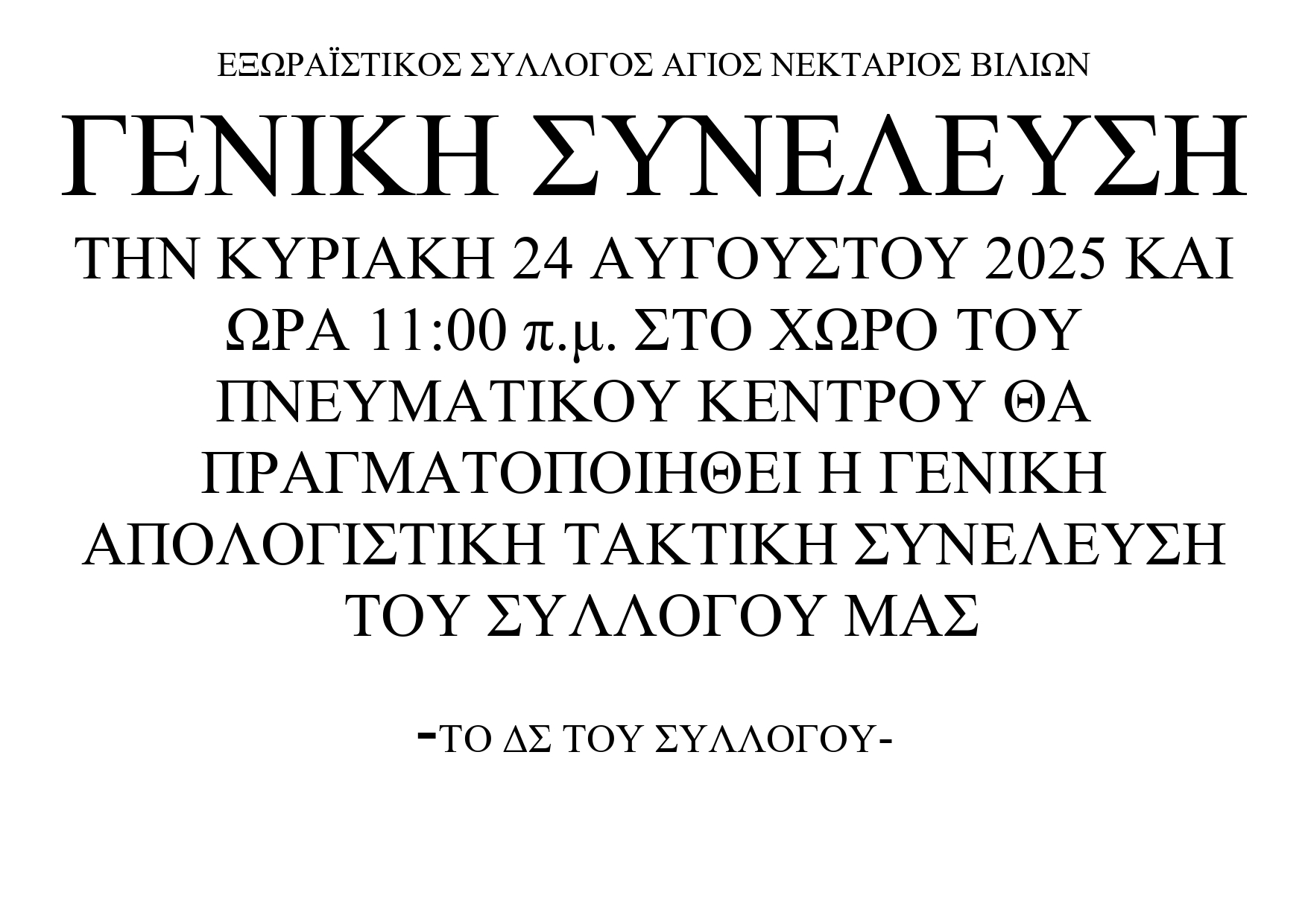Η σύνθεση του 23ου ΔΣ του συλλόγου μας "Αγιος Νεκτάριος Βιλίων" είναι η εξής:
